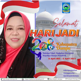 Keluarga Besar Dinas Koperasi dan UKM Kabupaten Dompu Mengucapkan Selamat Hari Jadi Kabupaten Dompu Ke 208 (11 April 1815 - 11 April 2023) dengan Tema "Bulatkan Tekad, Tingkatkan Sinergisitas Menuju Dompu MASHUR.